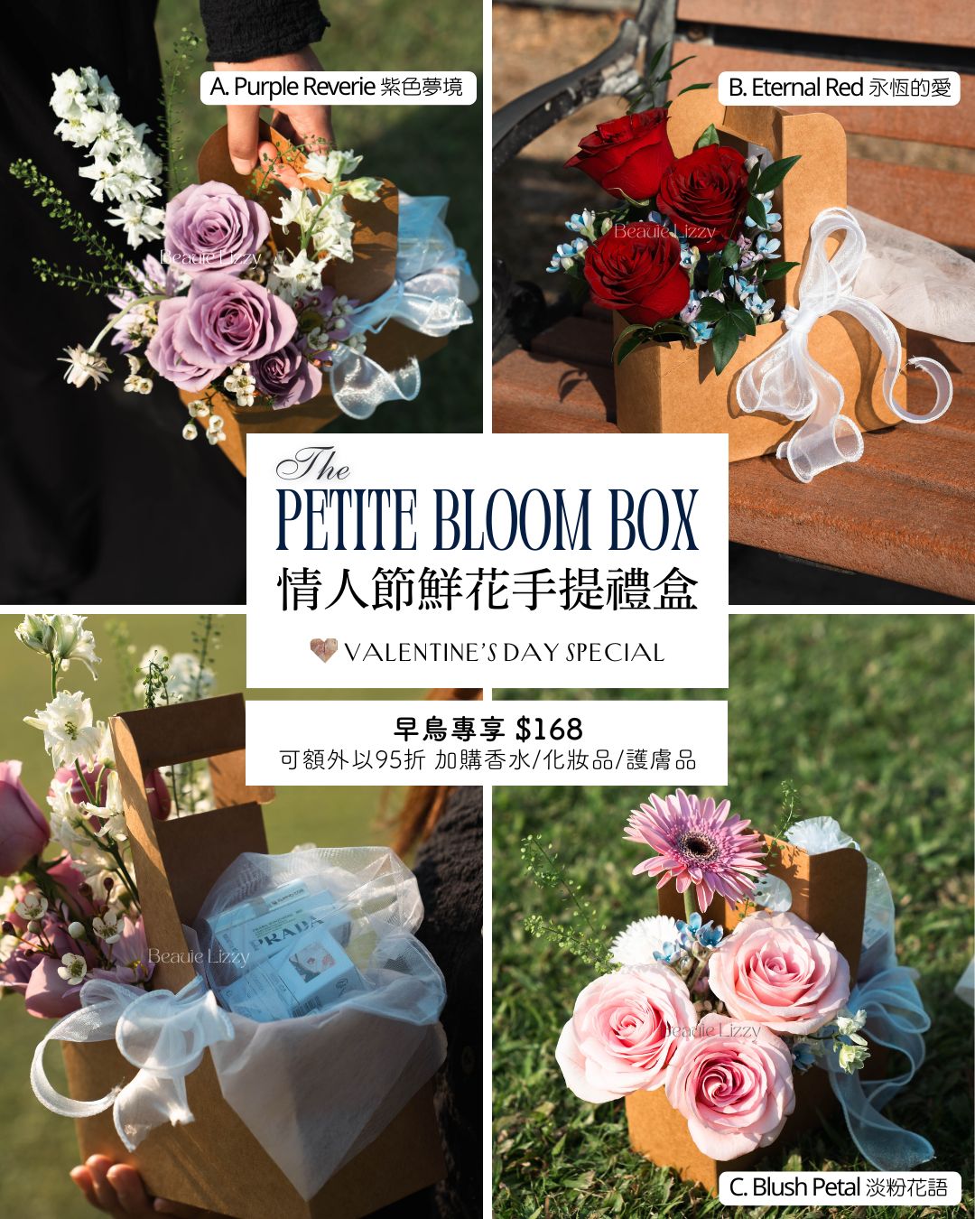 情人節鮮花手提禮盒💌𝒕𝒉𝒆 𝑷𝒆𝒕𝒊𝒕𝒆 𝑩𝒍𝒐𝒐𝒎 𝑩𝒐𝒙– Valentine’s Day Special – 只限門店取貨
